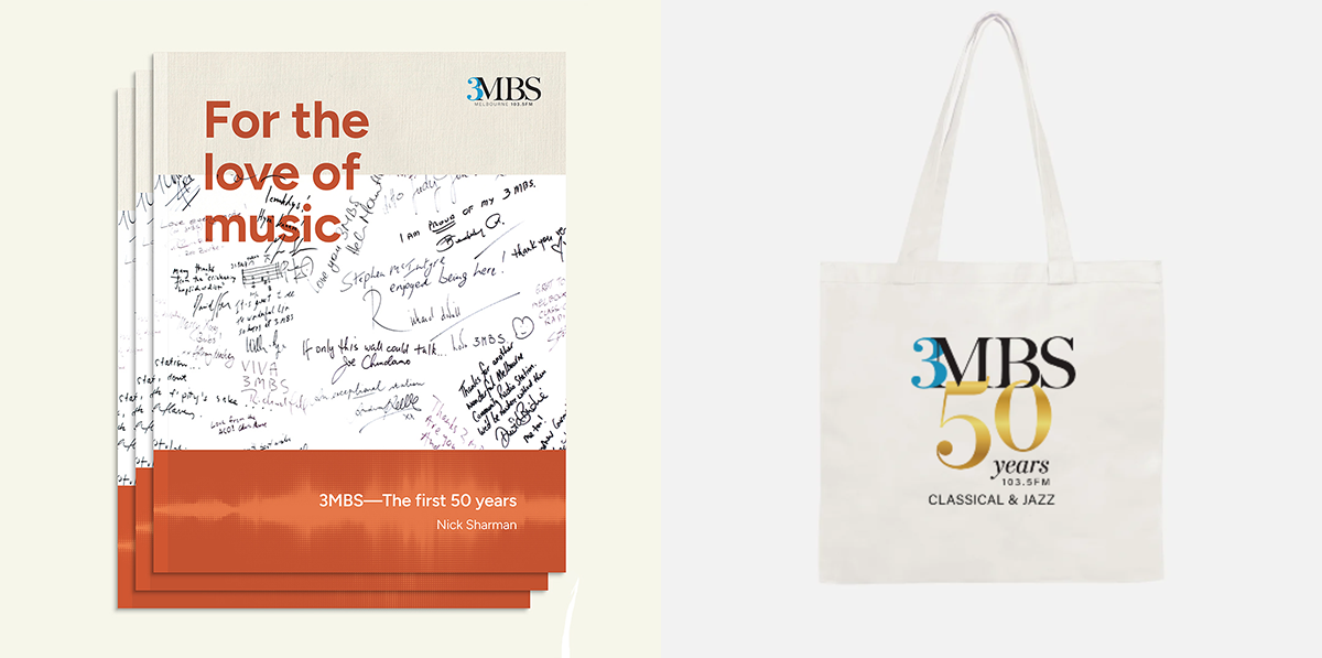 3MBS has launched its 50th-anniversary book, For the love of music: 3MBS—the first 50 Years by University of Melbourne academic, Nick Sharman. This beautifully designed 55-page publication includes the history of the station interspersed with fascinating (and occasionally hilarious) quotes from volunteers, staff members, patrons and listeners, and is peppered with vibrant photos—from the present reaching back to 3MBS’s early days in its Kew studios.
